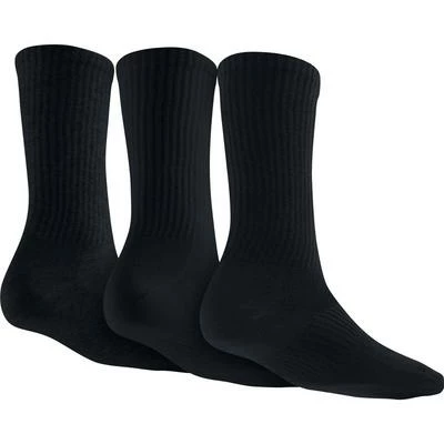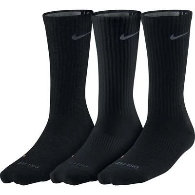 Lifts Sweat Away From The Skin. Colour: Black / Grey The Nike Dri-FIT Non-Cushion Crew Socks (Large/3Pair) are soft and snug with supportive arch compression and sweat-wicking fabric to help keep feet dry. Benefits Dri-FIT fabric to wick sweat away and help keep you dry and comfortable Left/right specific for enhanced fit Arch support for a snug, secure fit Product Details Fabric: Dri-FIT 78% polyester/18% nylon/4% spandex Machine wash