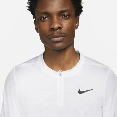 This NikeCourt Dri-FIT Advantage Top will most definitely be your new favourite layer. The stretchy, breathable design is made from at least 75% recycled polyester fibres and it has a zipped placket so you can easily vent out extra heat when your match gets going. Colour: White Product Details Nike Dri-FIT Technology moves sweat away from your skin for even quicker evaporation, helping you to stay dry and comfortable Underarm gussets give you extra room to move Slim fit for a tailored feel Fabric: 88% polyester / 12% elastane