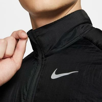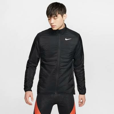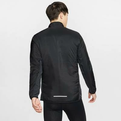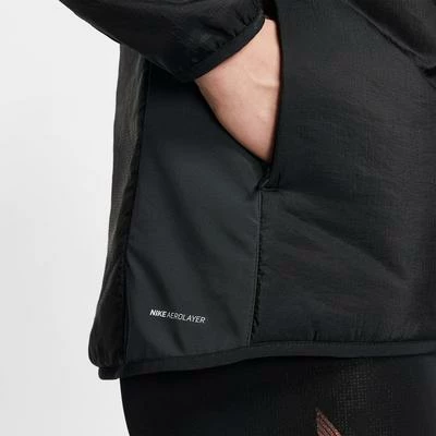 This jacket is perfect to keep you warm on those windy days, its design allows the warm air to be trapped inside the jacket, preventing the cold air from reaching you. Colour: Black / Grey Fog WARMTH WITHOUT THE WEIGHT FOR COLD ROUTES. The Nike AeroLayer Jacket is designed to trap warm air for super-lightweight warmth. It is water resistant and breathable so you can tackle your mileage regardless of the weather. Water Resistant and Breathable Nike AeroLayer technology utilises a layer of lightweight insulation between a water-resistant shell and inner lining to provide warmth and breathability Lightweight warmth Synthetic fill throughout has details between the fill that trap warm air. The result is warmth without weight. Stretchy freedom Stretch fabric on the side panels and under the arms lets you move freely More Benefits Ripstop woven fabric is durable and lightweight Zip hand pockets store small essentials A flap conceals the zip Product Details Standard fit Full-zip design Body: 100% nylon. Panels: 86% polyester/14% elastane. Lining/fill: 100% polyester. Machine wash