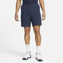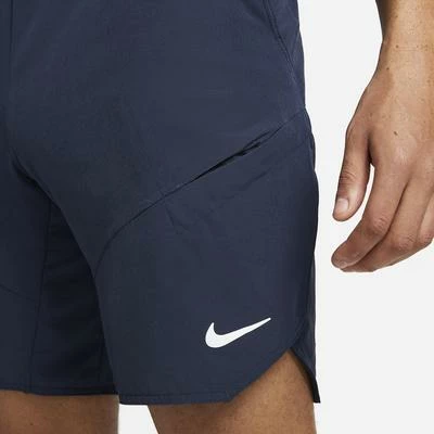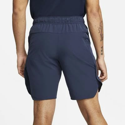 The Nike Advantage 9 inch tennis shorts are more than ready to go for any match or training session! Featuring an elasticated waistband with an internal drawcord, side pockets and overlapping side hem vents. Colour: Obsidian Product Details Dri-FIT sweat-wicking performance Angled pleats at the bottom of each pocket for easy, secure storage Overlapping side hem vents Made with at least 75% recycled fibers Material: 89% Polyester / 11% Spandex