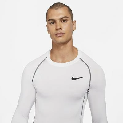 The Nike Pro Dri-FIT tight fit long sleeve top hugs you in a lightweight fabric, allowing for breathability in the high heat zones, ensuring that you can stay cool, calm and collected during your training session. The stretchy fabric has been made from at least 75% recycled polyester. Colour: White Built-in Breathability Mesh over high-heat areas at the back, sides and underarms lets air flow to help keep you cool when all the action heats up. Sweat Wicking Power Nike Dri-FIT Technology moves sweat away from your skin for quicker evaporation, helping you stay dry and comfortable. Movement Minus Distractions Lightweight, stretchy fabric with vents at the hem helps you move naturally during high-intensity sets. Product Details Tight fit for a body-hugging feel Fabric: 92% polyester / 8% elastane