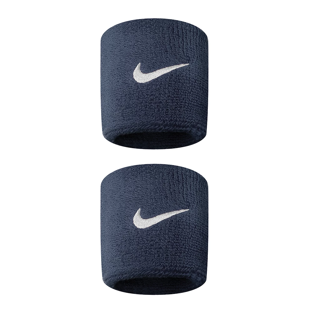 The Nike singlewide wristband is 2.5 inches and made from absorbent cotton/nylon/spandex blend with an embroidered Nike Swoosh. 2 per pack.