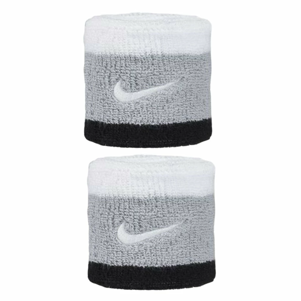 The Nike singlewide wristband is 2.5 inches and made from absorbent cotton/nylon/spandex blend with an embroidered Nike Swoosh. 2 per pack.