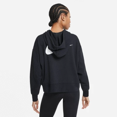 This Nike Swoosh hooded zip-up sweatshirt is ideal for every sports woman, ensuring a sense of high performance and a practical fit all day long. Colour: Black Product Details Regular fit Dri-FIT Technology keeping you dry and comfortable Hood with adjustable drawstring Side pockets Nike logo