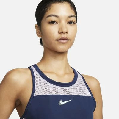 Make a statement on the court. Crafted from lightweight, breathable fabric, this dress combines stretchy, snug support on top with pleats that flow and flare with your movement on the bottom for a cold, powerful look. Colour: Midnight Navy / Light Arctic Pink / Glacier Blue / White Product Details Nike Dri-FIT Technology moves sweat away from your skin for quicker evaporation, helping you stay dry and comfortable Mesh insets on sides and chest add breathability Slim fit for a tailored feel