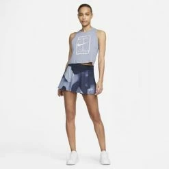 Start hitting those aces against your opponent in this slam skirt, they won’t know what’s hit them. The flouncy, stretchy design is made from lightweight fabric that’s made from at least 75% recycled polyester fibres. A single pleat at the front gives you room to move while you run and slide. Colour: Obsidian / White Product Details Nike Dri-FIT Technology moves sweat away from your skin for quicker evaporation, helping you stay dry and comfortable Lightweight jersey fabric is soft, breathable and very stretchy Inner shorts let you tuck spare balls under the hem for convenient storage Wide waistband stretches for a secure, comfortable fit Standard fit for a relaxed, easy feel