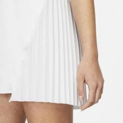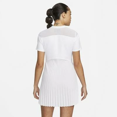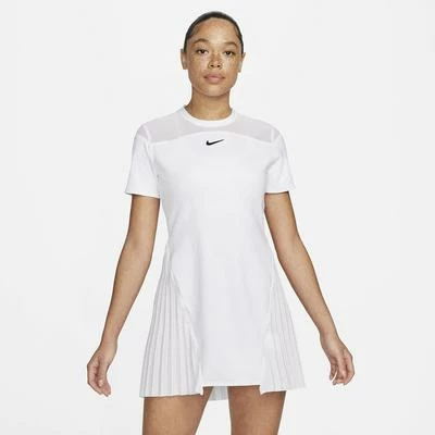 Classic tailoring adds some style to your game in this tennis dress. Bonded, vertical seams on the front mimic the look of corsets, while an asymmetrical, pleated skirt flows and flares as you run the court. Colour: White Product Details Extra Airflow - Stretchy mesh on the upper chest and back enhances airflow and gives you extra room to move during serves and overheads. The streamlined design does not include shorts, allowing you to wear it your way. Dry Design - Nike Dri-FIT Technology moves sweat away from your skin for quicker evaporation, helping you stay dry and comfortable. Slim fit for a tailored feel