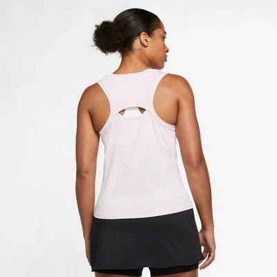 The NikeCourt Victory Tank is a soft, stretchy court essential that wicks sweat so you can stay focused on your match. Colour: Regal Pink Product Details Dri-FIT Technology helps you stay dry and comfortable Knit fabric is breathable, stretchy and very soft Curved hem helps keep you covered while you run the court Cut-out panel at the back enhances breathability in this high-heat area Slim fit for a tailored feel V-neck Racerback 89% polyester / 11% elastane