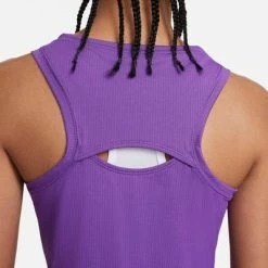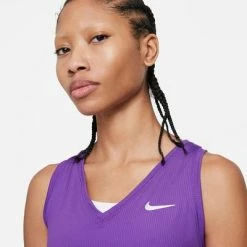 The NikeCourt Victory Tank is a soft, stretchy court essential that wicks sweat so you can stay focused on your match. Colour: Wild Berry Product Details Dri-FIT Technology helps you stay dry and comfortable Knit fabric is breathable, stretchy and very soft Curved hem helps keep you covered while you run the court Cut-out panel at the back enhances breathability in this high-heat area Slim fit for a tailored feel V-neck Racerback 89% polyester / 11% elastane