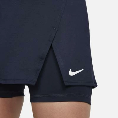 Start hitting those aces against your opponent in this skirt, they won’t know what’s hit them. The flouncy, stretchy design is made from lightweight fabric that’s made from at least 75% recycled polyester fibres. A single pleat at the front gives you room to move while you run and slide. Colour: Blue Product Details Nike Dri-FIT Technology moves sweat away from your skin for quicker evaporation, helping you stay dry and comfortable Lightweight jersey fabric is soft, breathable and very stretchy Inner shorts let you tuck spare balls under the hem for convenient storage Wide waistband stretches for a secure, comfortable fit Standard fit for a relaxed, easy feel