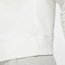 This Nike top combines soft knitwear with moisture management technology, giving players both warmth and dryness before, during and after your session. Colour: Summer White Product Details Heat and moisture management Soft fabric with Dri-FIT technology Elegant look on the court Draped material overlaps at the back, which flatters your figure A hole has been created in the upper part of the back, that allows cool air to enter and dissipate heat Cuffed wrists help to keep the top in place during movements