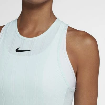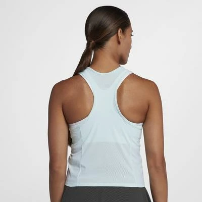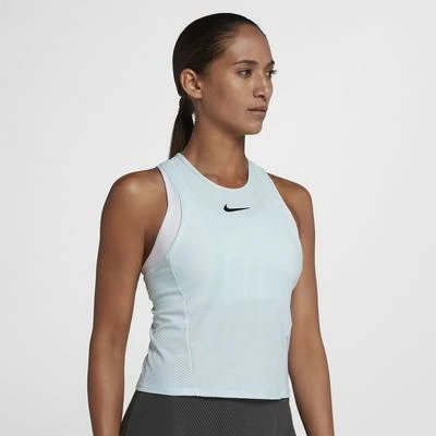 Featuring a racerback design for breathability, treated with Dri-Fit and cooling technology and has a flattering fit. Colour: Glacier Blue / White / Black NikeCourt Zonal Cooling Slam Women’s Tennis Tank combines Nike Zonal Cooling technology and Dri-FIT technology for breathable, sweat-wicking comfort. Its racerback design allows you to move without restriction. Nike Zonal Cooling technology helps keep you cool without distraction. Racerback silhouette allows natural range of motion. Body-hugging fit moves with you for zero distractions. Circular-knit jacquard is lightweight, stretchy and enhances breathability by placing an open-knit pattern in high-heat and high-motion areas. Dri-FIT technology throughout wicks sweat away from the body to help keep you dry and comfortable. 89% Polyester, 11% Spandex
